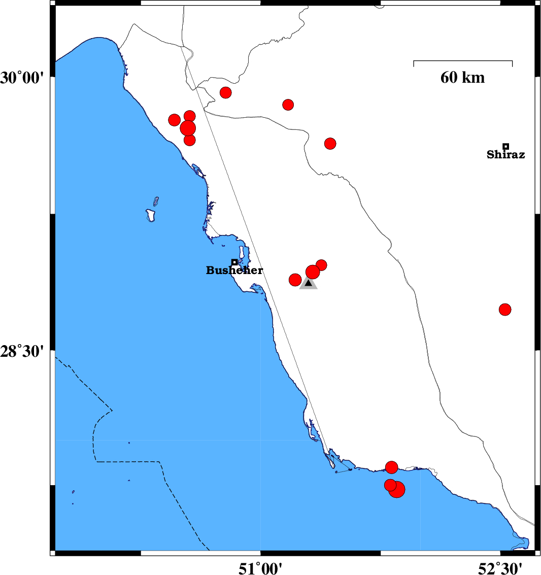 Bushehr Province, 16 km North of Bandar-e genaveh | |