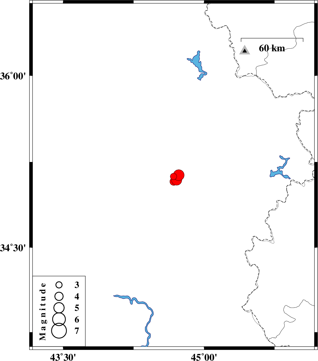 | 2023/09/11 | 06:45:58.3 | 10:15:58.3 | 35.123 | 44.675 | 12 | ML:3.1 | Iraq, 85 km South-West of Sulaymaniyah | ||
