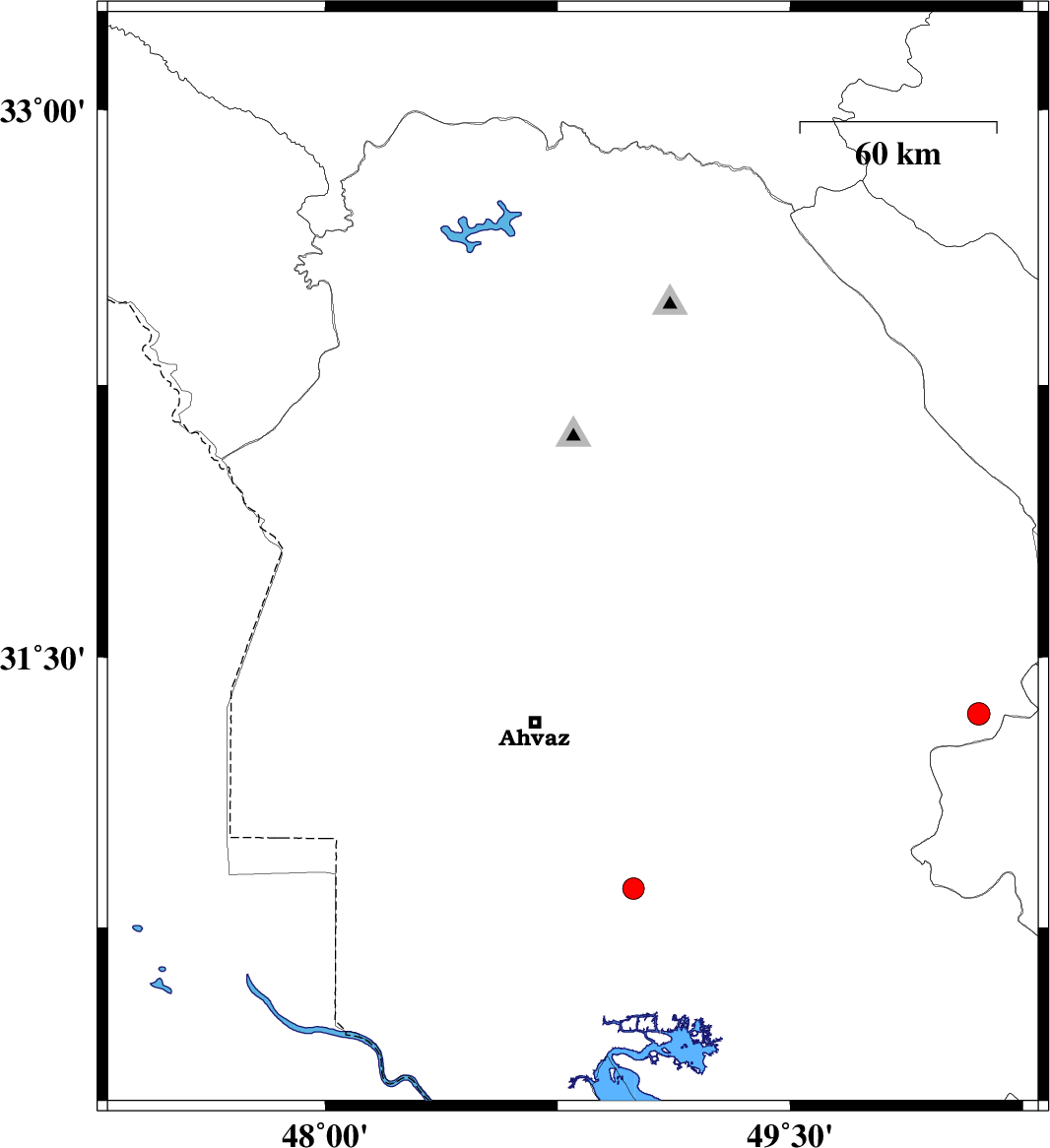 | 2023/09/01 | 06:55:05.0 | 10:25:05.0 | 32.142 | 48.985 | 9 | ML:3.5 | Khoozestan Province, 17 km North-East of Shushtar | ||