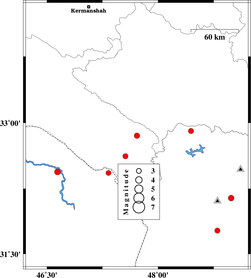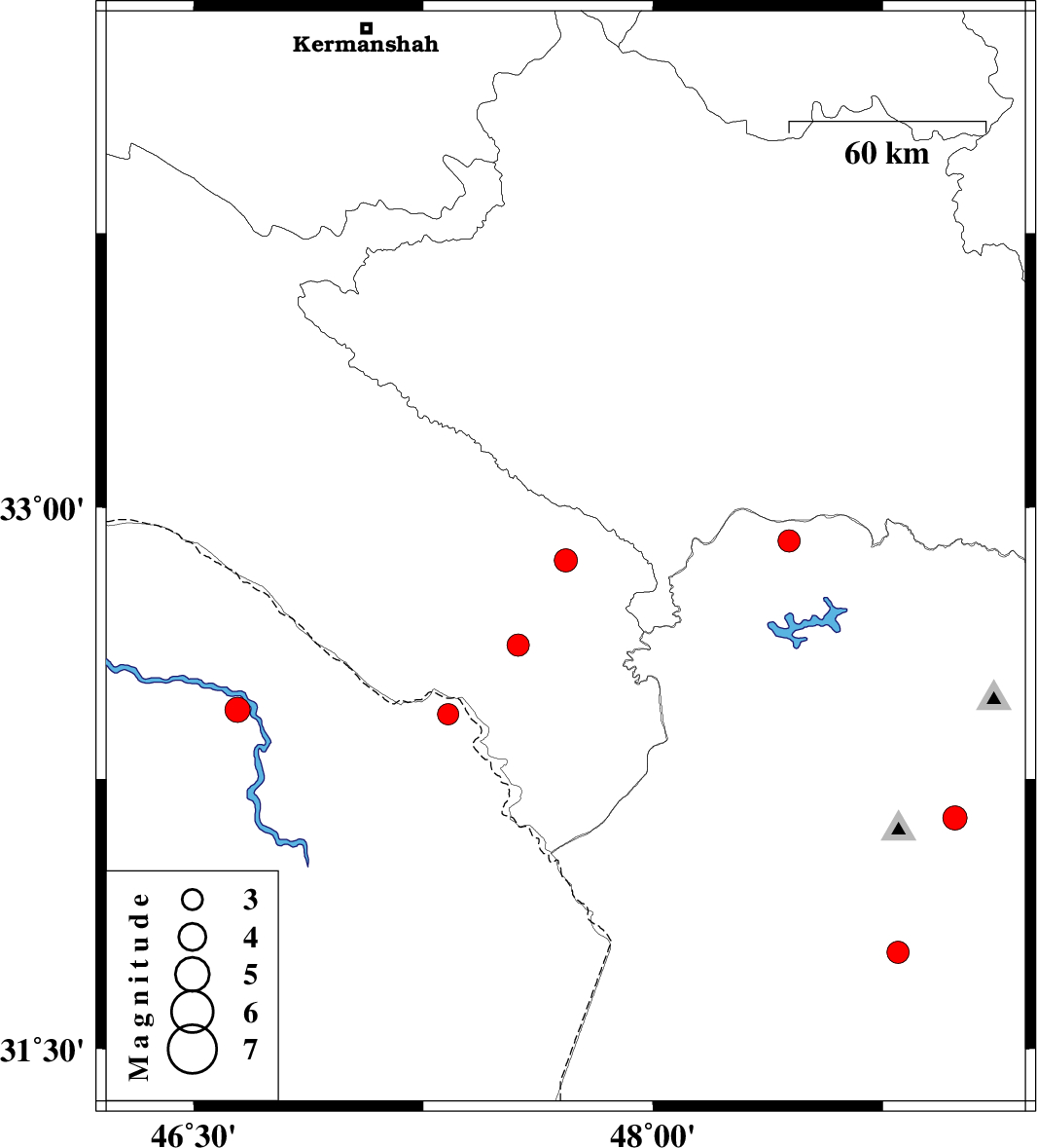 | 2023/09/04 | 11:31:38.1 | 15:01:38.1 | 32.907 | 48.444 | 9 | ML:3.3 | Khoozestan Province, 50 km North of Andimeshk | ||