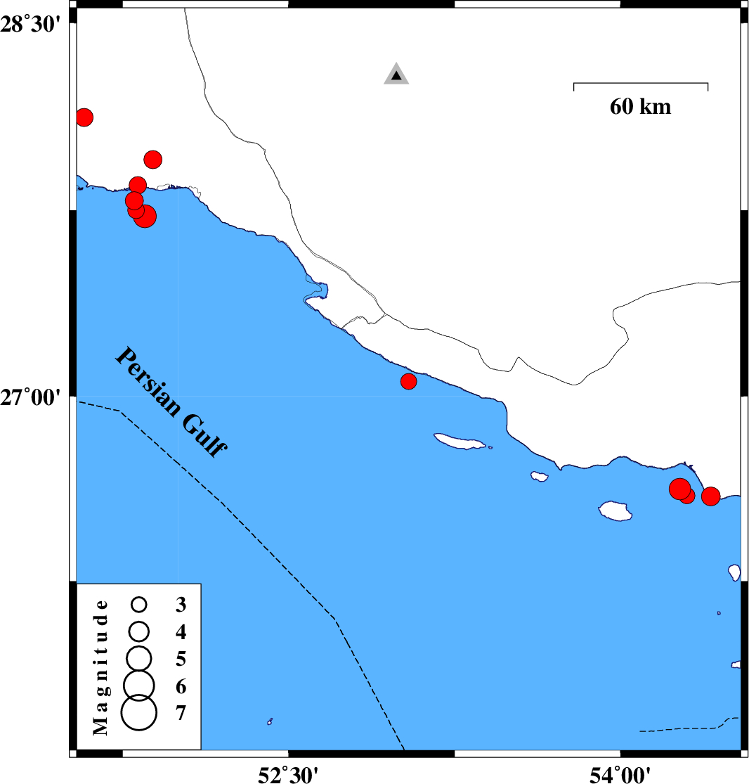 2023/09/12 09:35:59.4 13:05:59.4 27.78851.80212 ML:3.7 Persian Gulf, 26 km -West of Bandar-e kangan