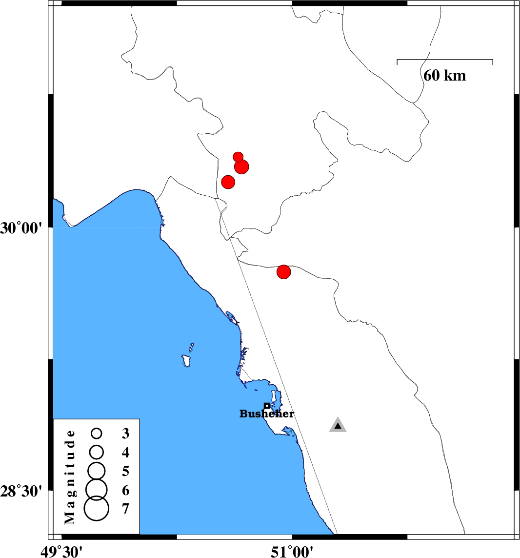 | 2023/09/28 | 08:52:36.7 | 12:22:36.7 | 29.747 | 50.945 | 12 | ML:4.1 | Bushehr Province, 46 km North-East of Bandar-e genaveh | ||