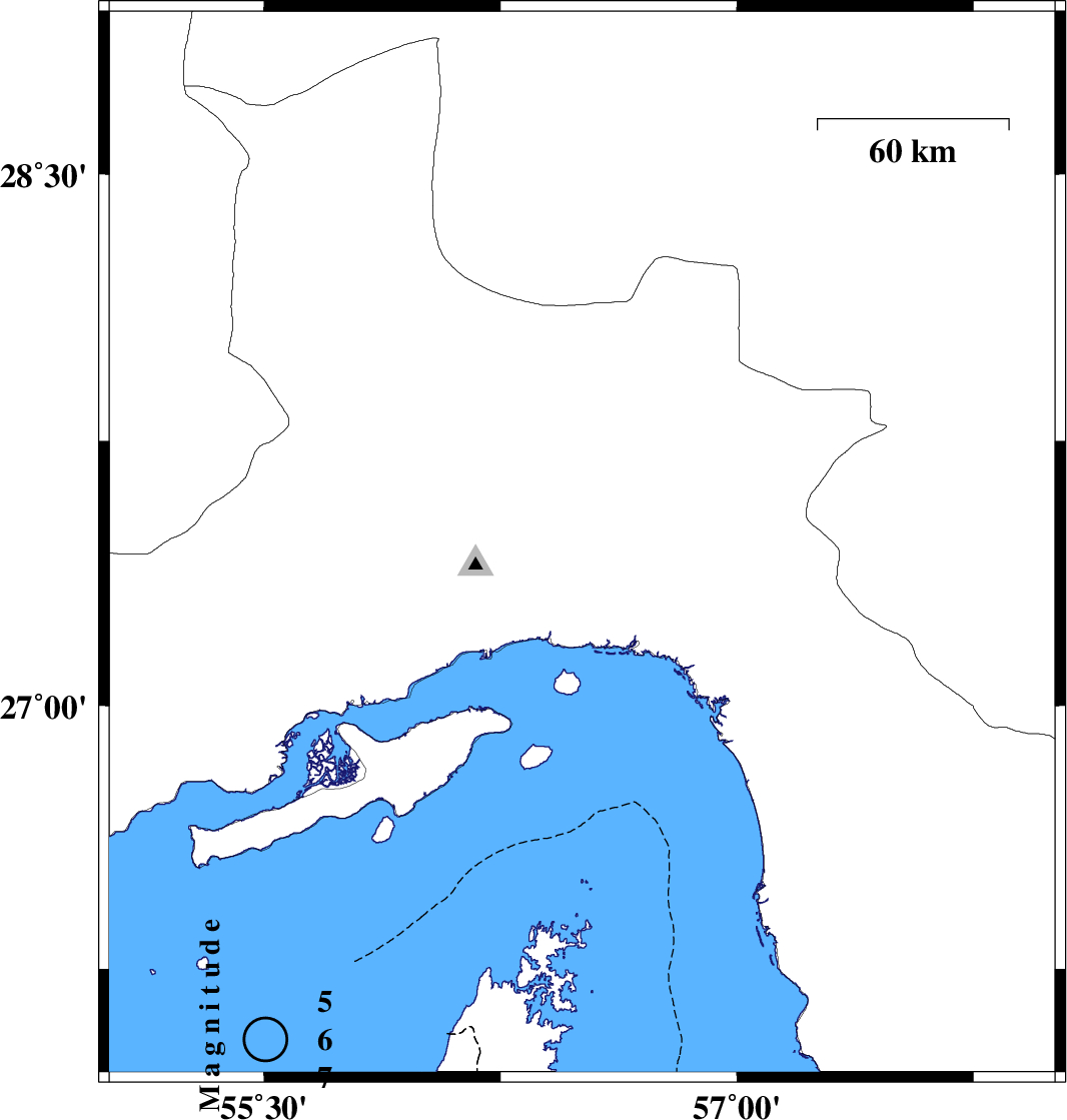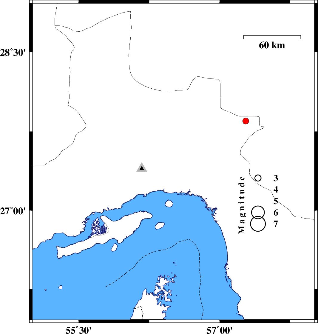 | 2023/10/01 | 11:51:02.8 | 15:21:02.8 | 28.408 | 56.993 | 12 | ML:3.2 | Kerman Province, 78 km South-West of Jiroft | ||