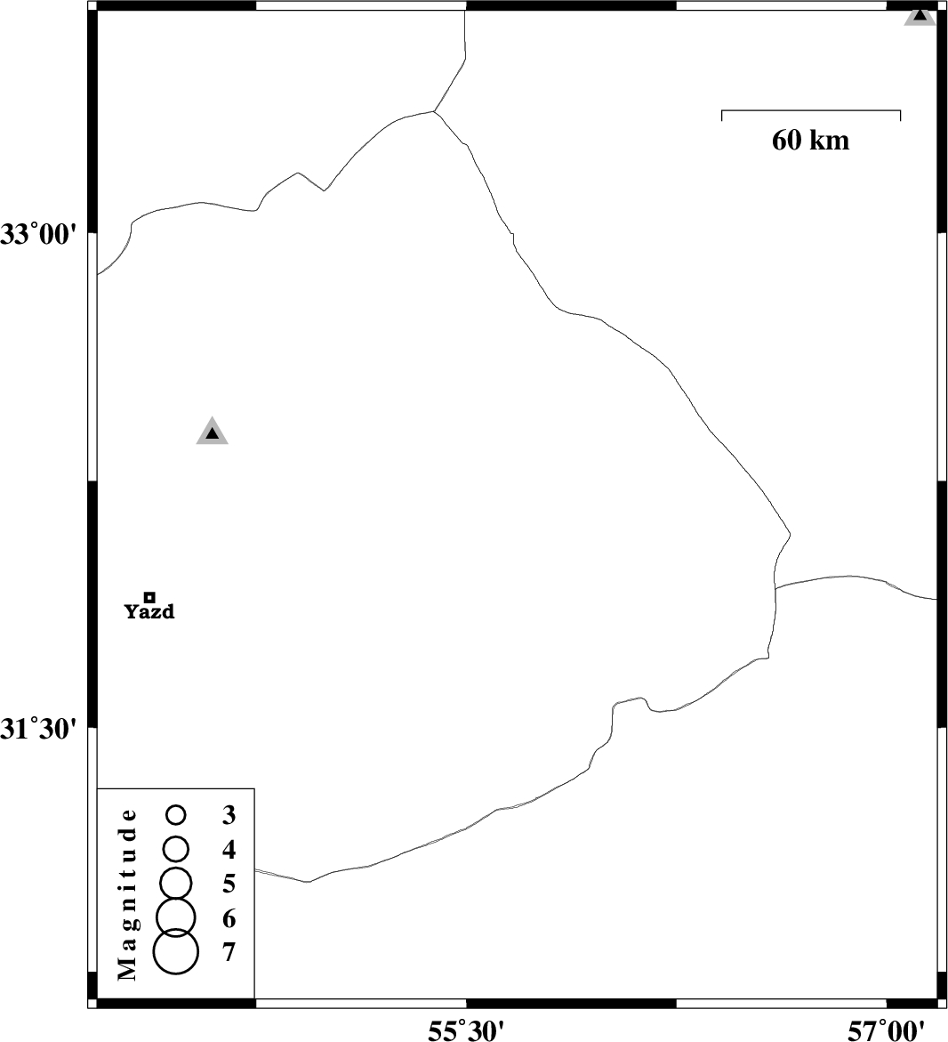 | 2023/10/01 | 18:20:19.1 | 21:50:19.1 | 32.166 | 55.681 | 12 | ML:2.8 | Yazd Province, 68 km North-East of Bafq |