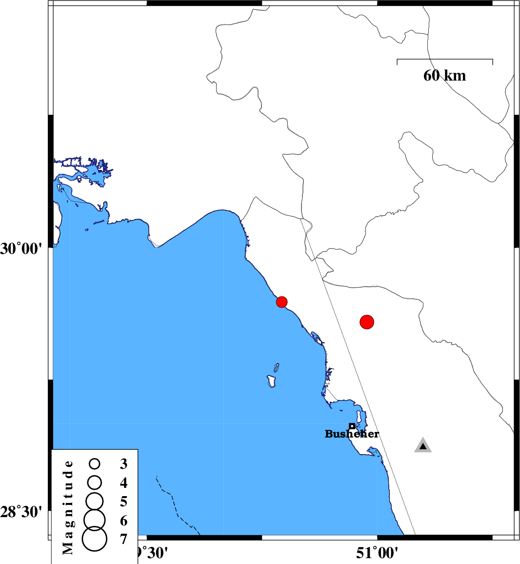 | 2023/09/28 | 08:52:36.7 | 12:22:36.7 | 29.747 | 50.945 | 12 | ML:4.1 | Bushehr Province, 46 km North-East of Bandar-e genaveh |