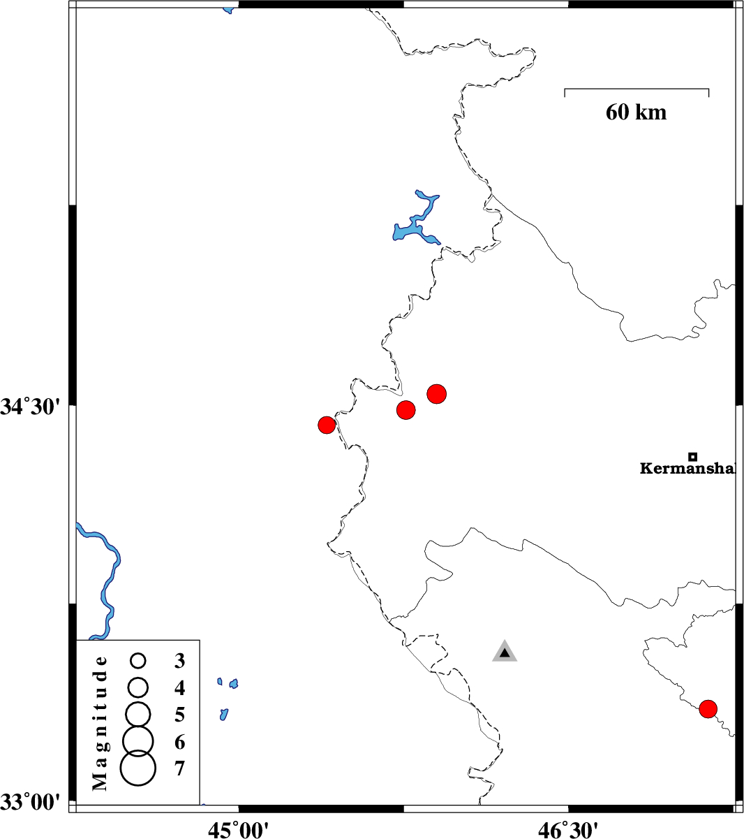 | 2023/10/04 | 03:28:41.7 | 06:58:41.7 | 34.482 | 45.76 | 8 | ML:3.8 | Kermanshah Province, 12 km -West of Sar-e pol-e zahab | ||