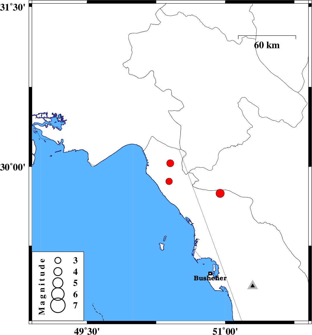 | 2023/09/28 | 08:52:36.7 | 12:22:36.7 | 29.747 | 50.945 | 12 | ML:4.1 | Bushehr Province, 46 km North-East of Bandar-e genaveh |
