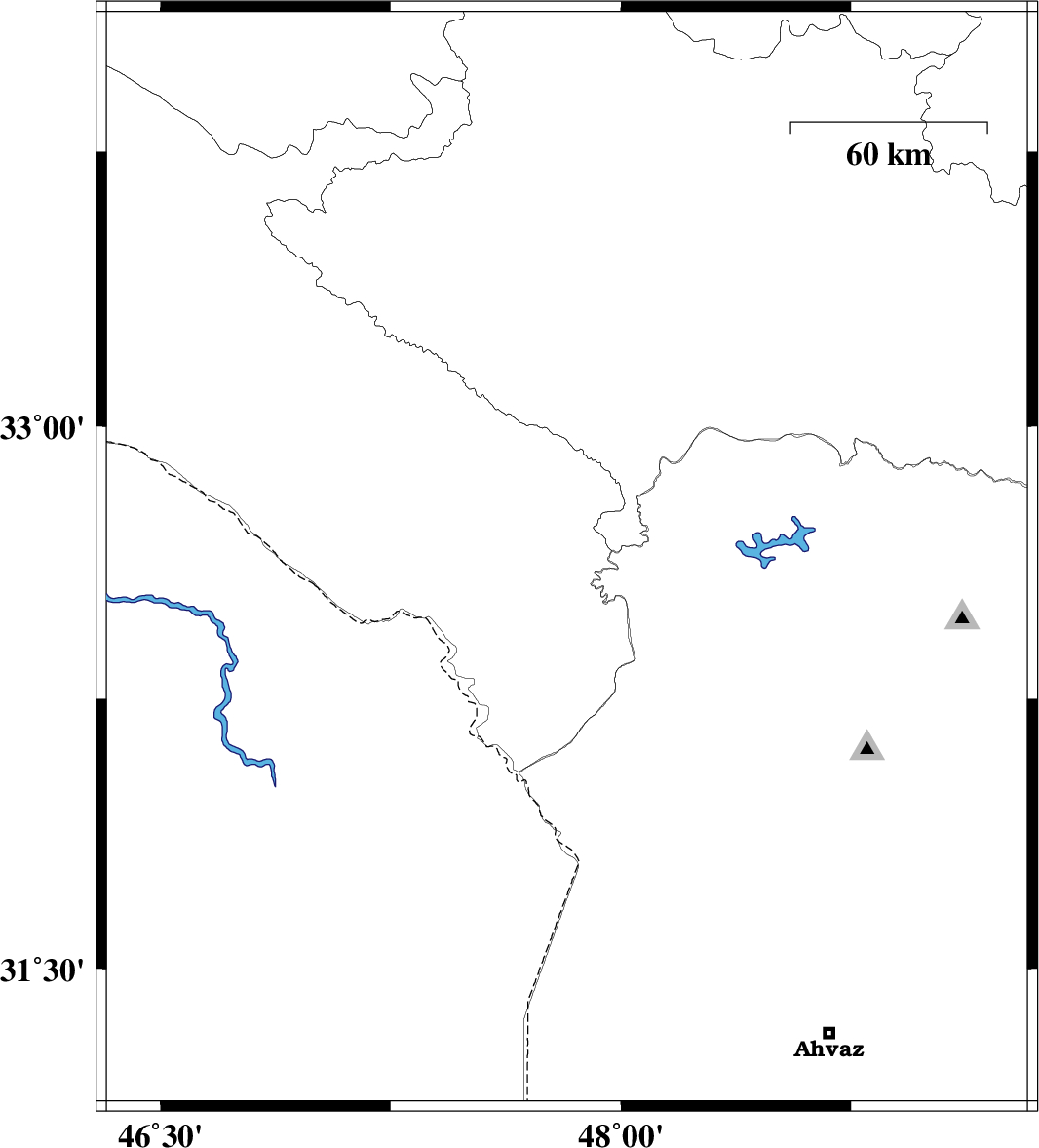 | 2023/10/11 | 06:48:37.1 | 10:18:37.1 | 31.707 | 48.938 | 12 | ML:3.4 | Khoozestan Province, 38 km South of Shushtar | ||