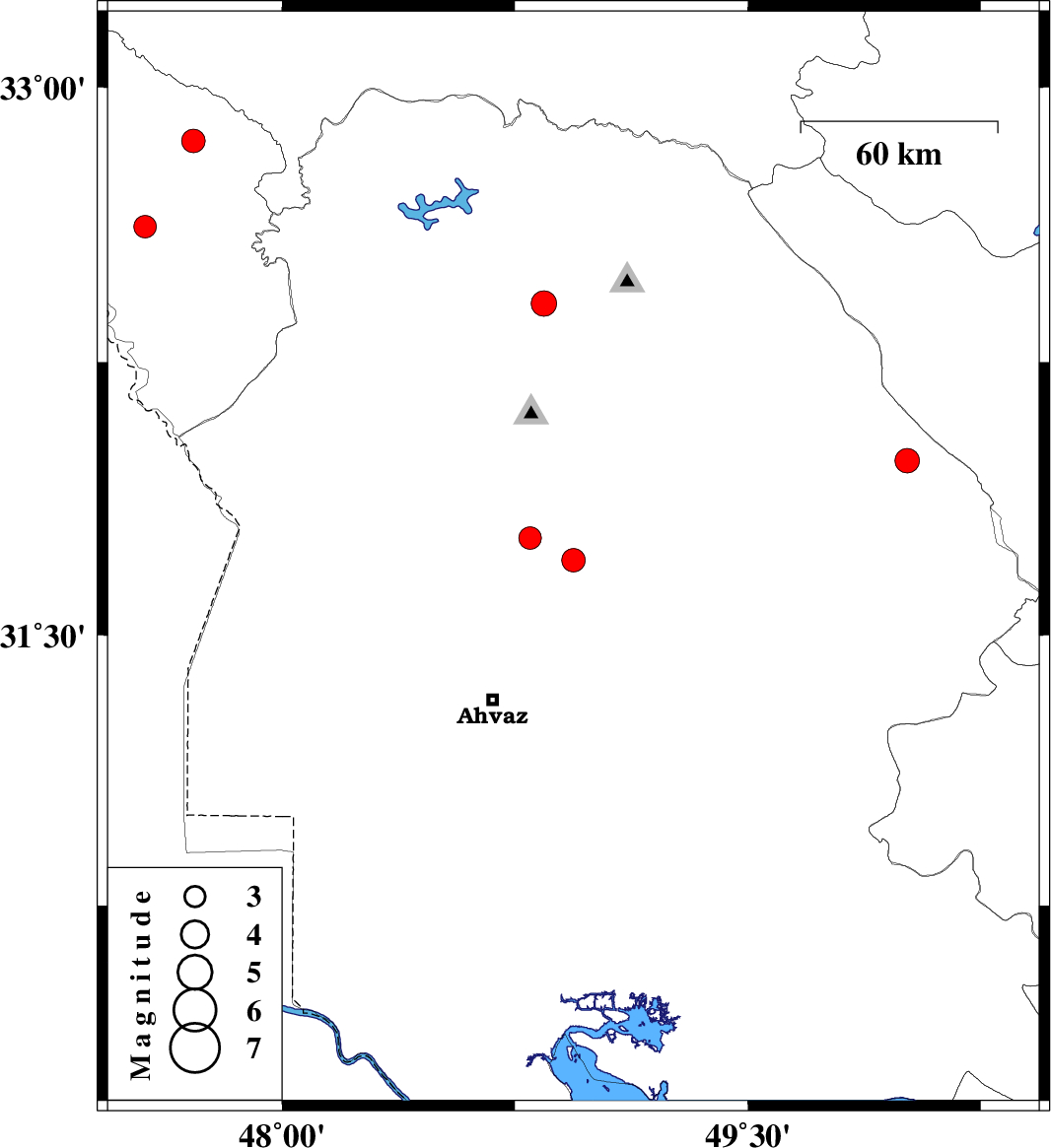 | 2023/09/19 | 14:05:08.1 | 17:35:08.1 | 31.98 | 50.013 | 12 | ML:3.5 | Khoozestan Province, 21 km North-East of Izeh |