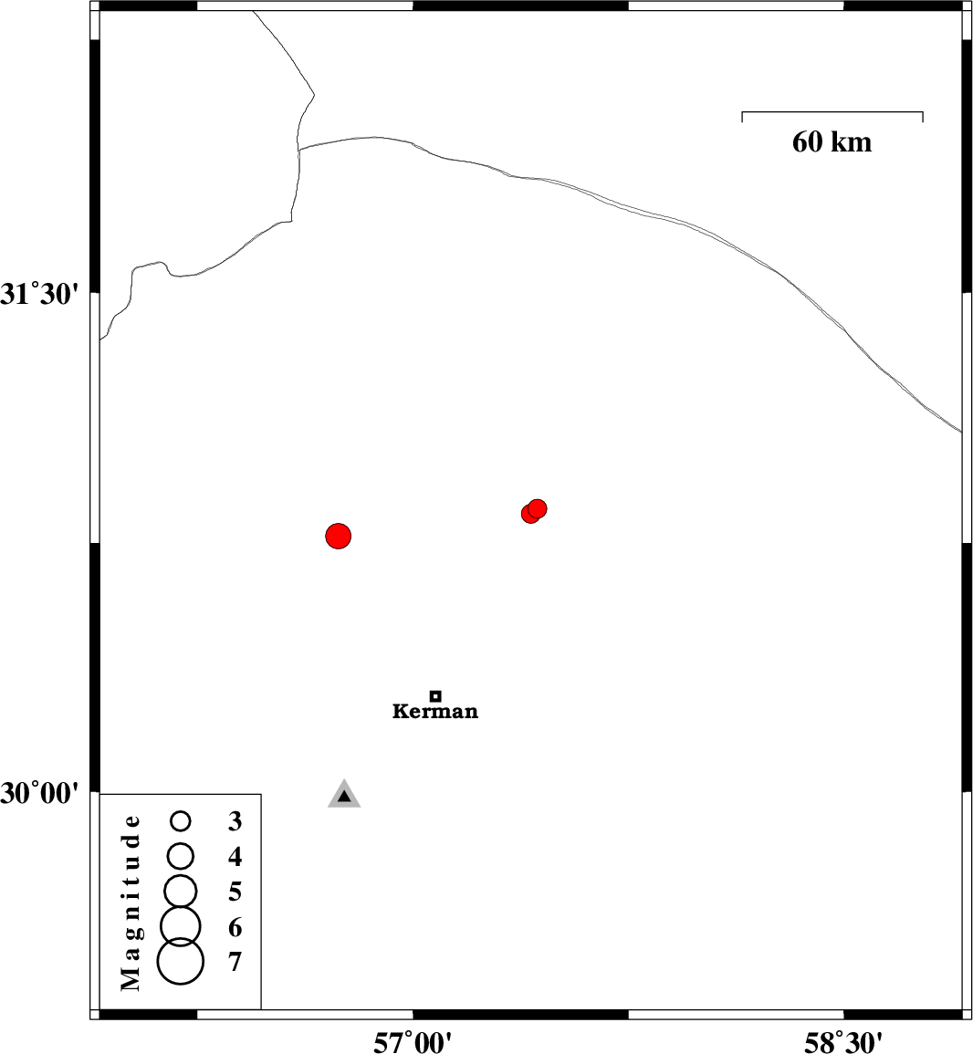 | 2023/10/16 | 02:08:25.4 | 05:38:25.4 | 30.837 | 57.41 | 12 | ML:3 | Kerman Province, 80 km -East of Zarand | ||