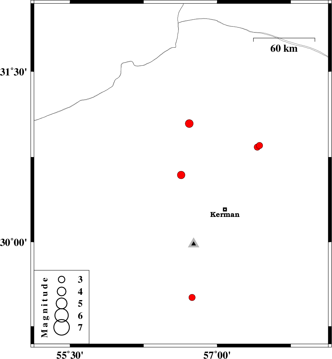 | 2023/10/16 | 02:08:25.4 | 05:38:25.4 | 30.837 | 57.41 | 12 | ML:3 | Kerman Province, 80 km -East of Zarand |