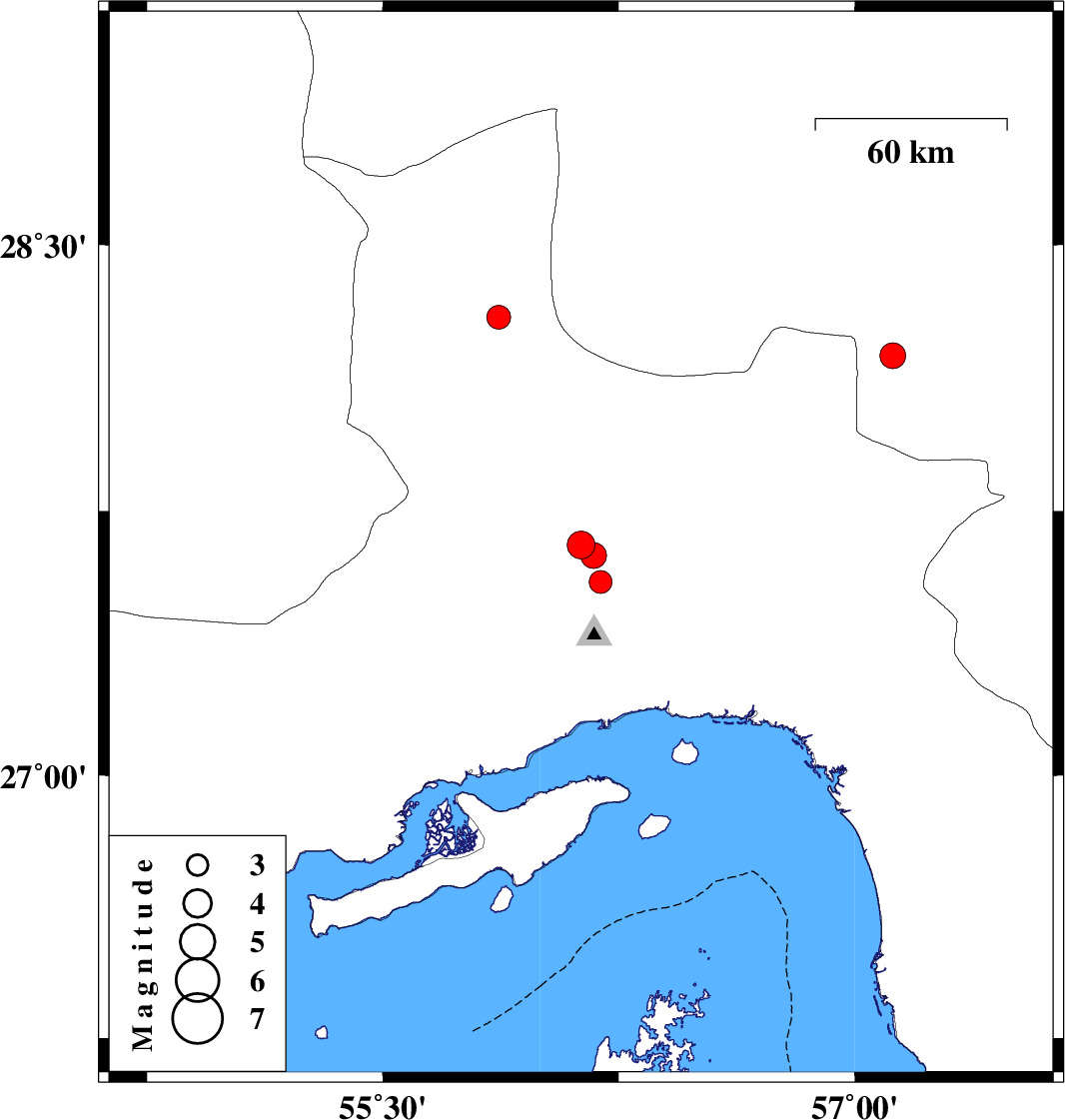 | 2023/11/13 | 05:50:08.2 | 09:20:08.2 | 27.654 | 56.13 | 12 | ML:3.9 | Hormozgan Province, 54 km North-West of Bandar-e abbas | ||