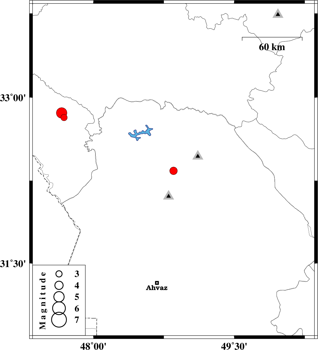 | 2023/11/14 | 05:54:28.4 | 09:24:28.4 | 32.339 | 48.853 | 12 | ML:3.6 | Khoozestan Province, 33 km North of Shushtar | ||