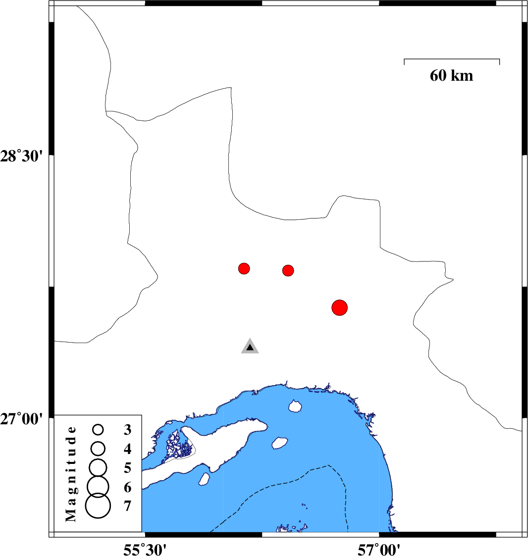| 2023/11/15 | 03:15:09.8 | 06:45:09.8 | 27.854 | 56.133 | 12 | ML:3.2 | Hormozgan Province, 55 km South-East of Hajiabad |