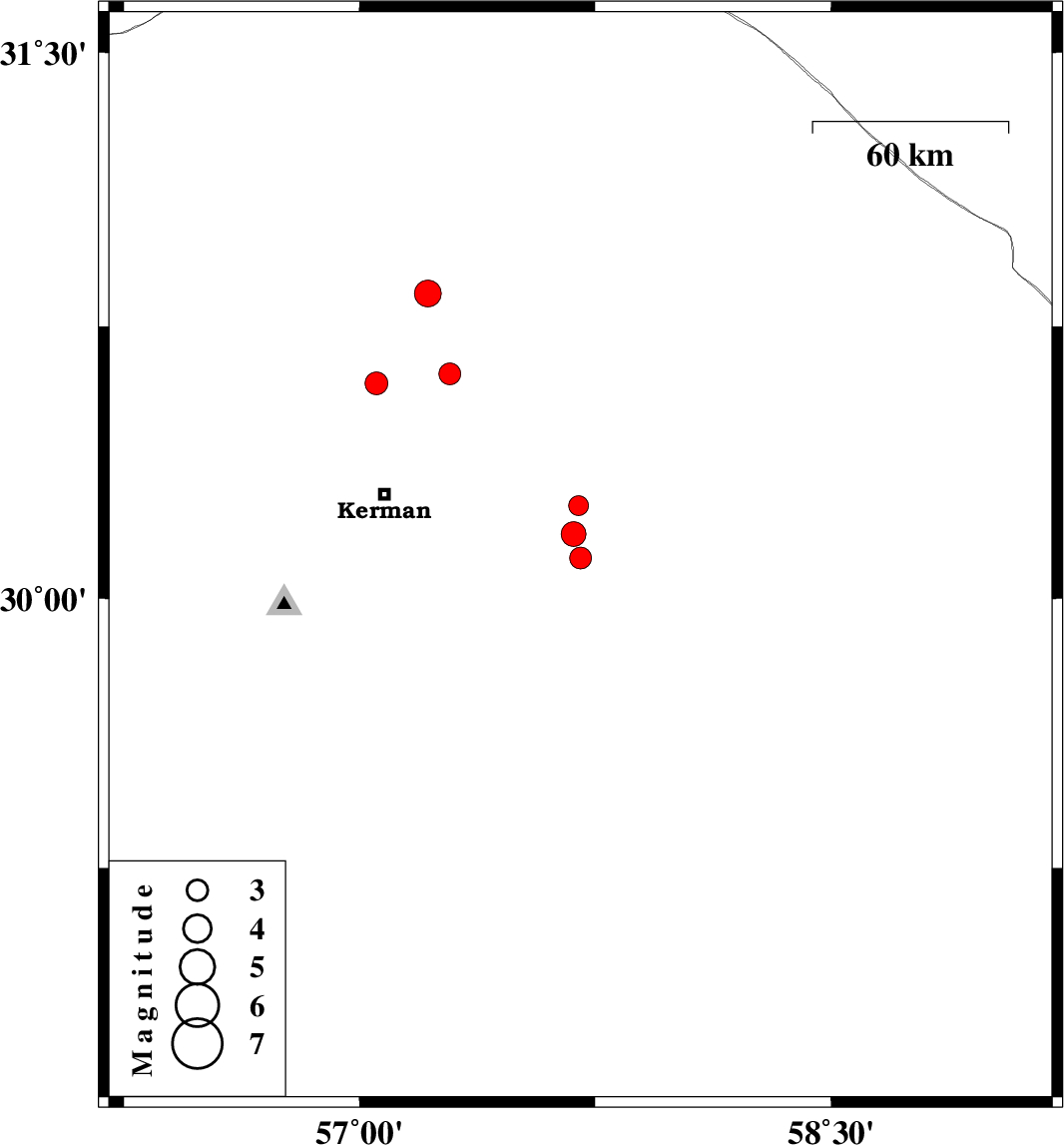 | 2021/02/27 | 02:37:13.0 | 06:07:13.0 | 30.594 | 57.054 | 12 | ML:3.2 | Kerman Province, 34 km North of Kerman |