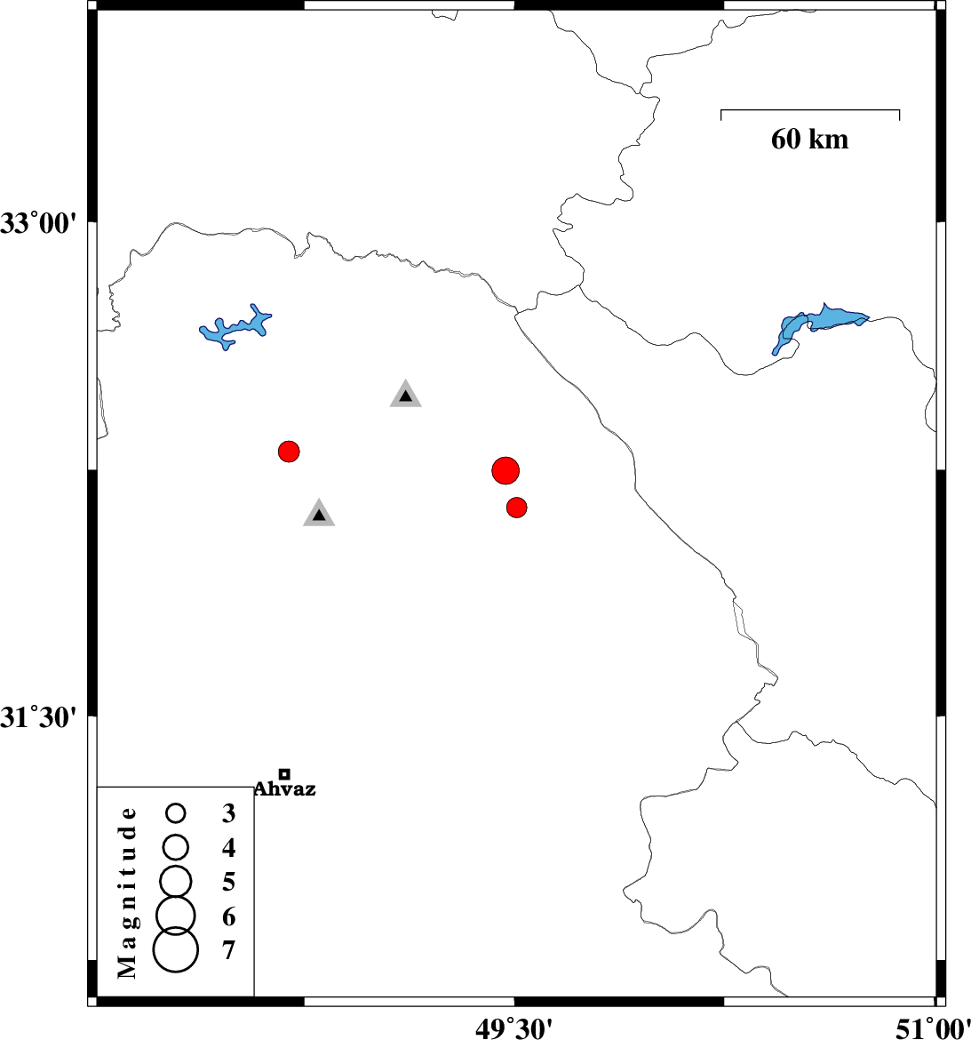 | 2023/12/20 | 22:30:45.9 | 02:00:45.9 | 32.306 | 48.694 | 12 | ML:3.4 | Khoozestan Province, 29 km -East of Dezful |