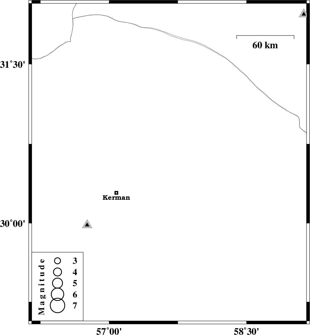 | 2023/12/23 | 16:37:57.9 | 20:07:57.9 | 30.567 | 57.655 | 10 | ML:3 | Kerman Province, 63 km North-East of Kerman |