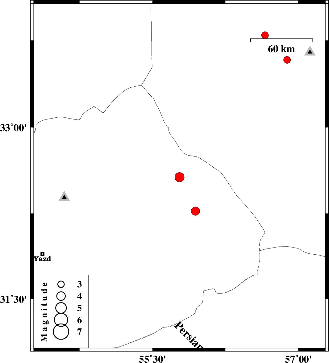 | 2023/12/23 | 11:04:35.3 | 14:34:35.3 | 32.27 | 55.941 | 12 | ML:3.9 | Yazd Province, 90 km North-East of Bafq |
