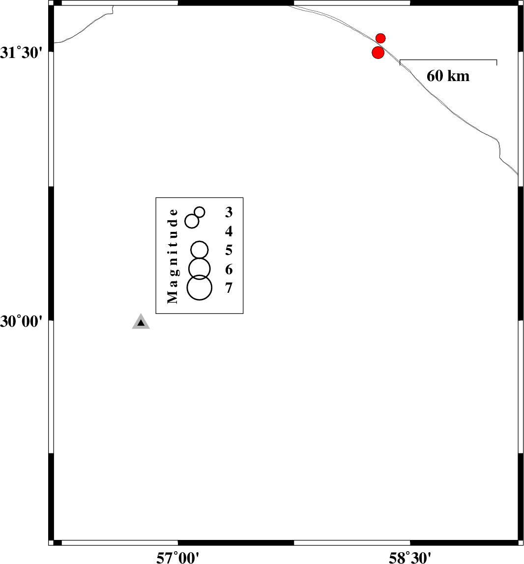 | 2021/03/14 | 13:12:53.4 | 16:42:53.4 | 30.62 | 57.288 | 16 | ML:3.1 | Kerman Province, 42 km North-East of Kerman | ||