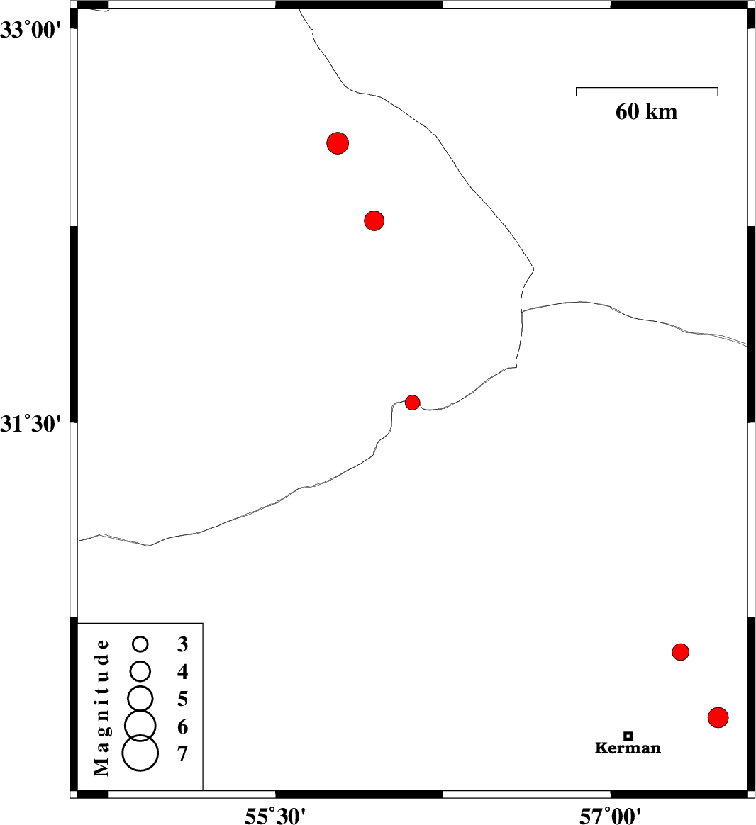 | 2024/01/10 | 09:45:43.8 | 13:15:43.8 | 30.36 | 57.481 | 12 | ML:4.1 | Kerman Province, 39 km -East of Kerman | ||