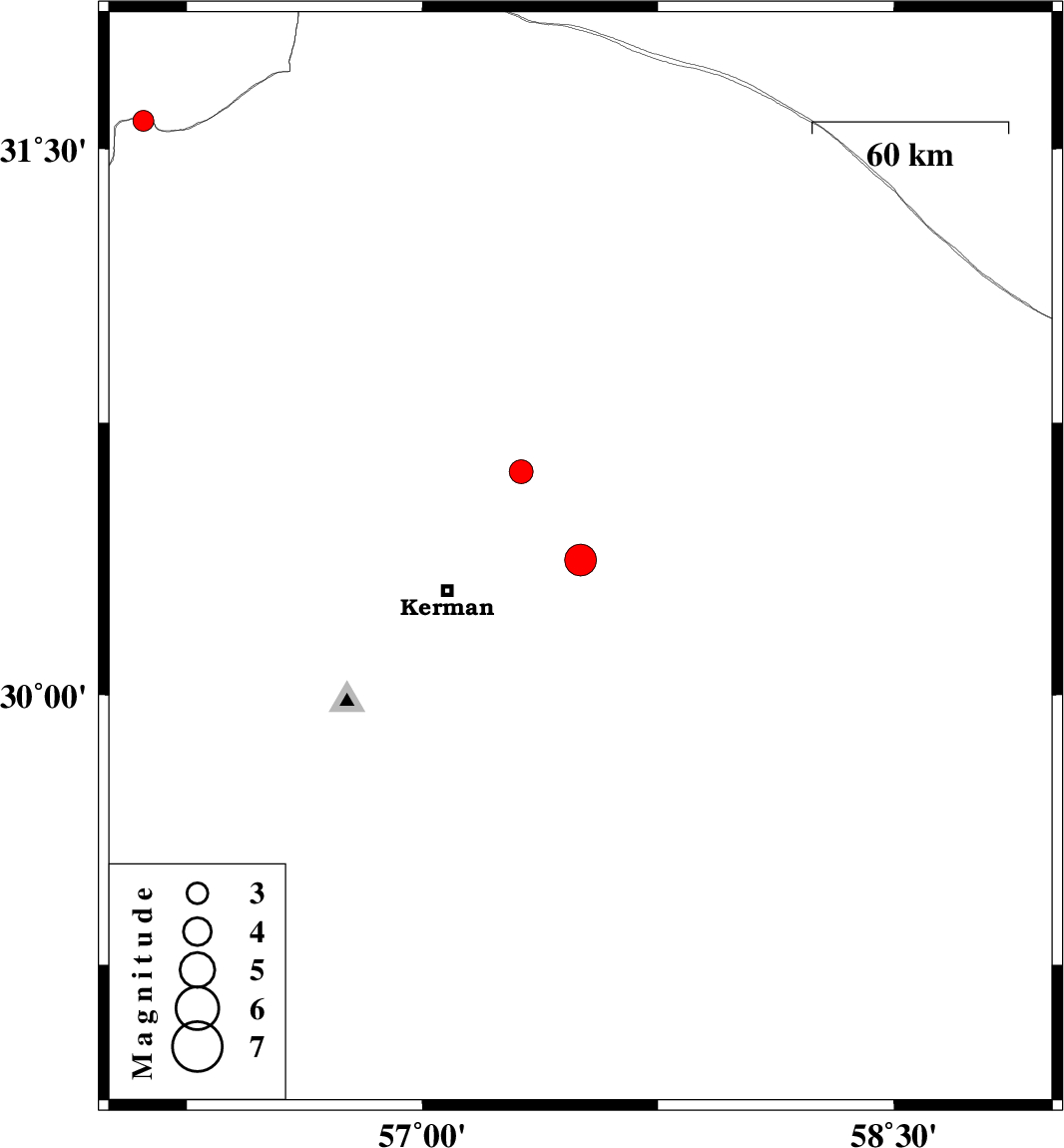 | 2024/01/21 | 23:04:23.0 | 02:34:23.0 | 31.576 | 56.113 | 12 | ML:3 | Kerman Province, 68 km -East of Bafq | ||
