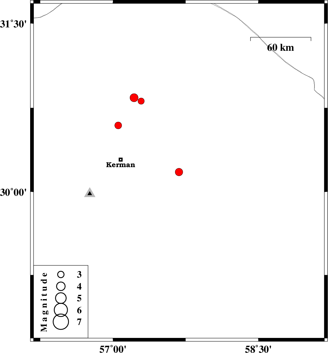 | 2021/02/27 | 02:37:13.0 | 06:07:13.0 | 30.594 | 57.054 | 12 | ML:3.2 | Kerman Province, 34 km North of Kerman | ||