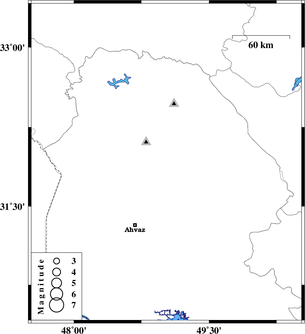 | 2021/02/07 | 22:06:23.9 | 01:36:23.9 | 31.911 | 49.027 | 12 | ML:3.2 | Khoozestan Province, 26 km -West of Masjed Soleyman |