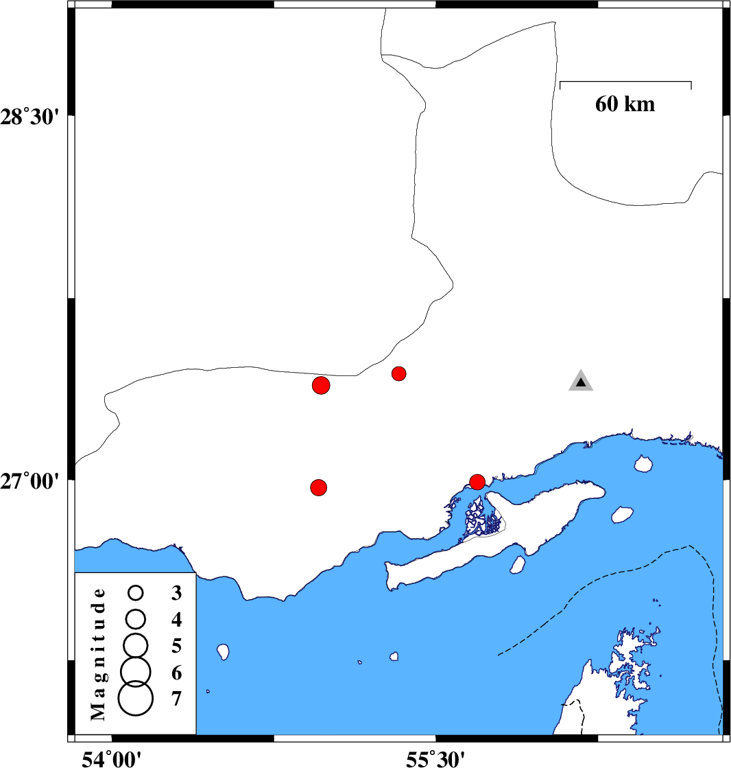 | 2024/02/04 | 01:52:06.2 | 05:22:06.2 | 26.968 | 54.956 | 10 | ML:3.4 | Hormozgan Province, 50 km North-East of Bandar-e lengeh | ||