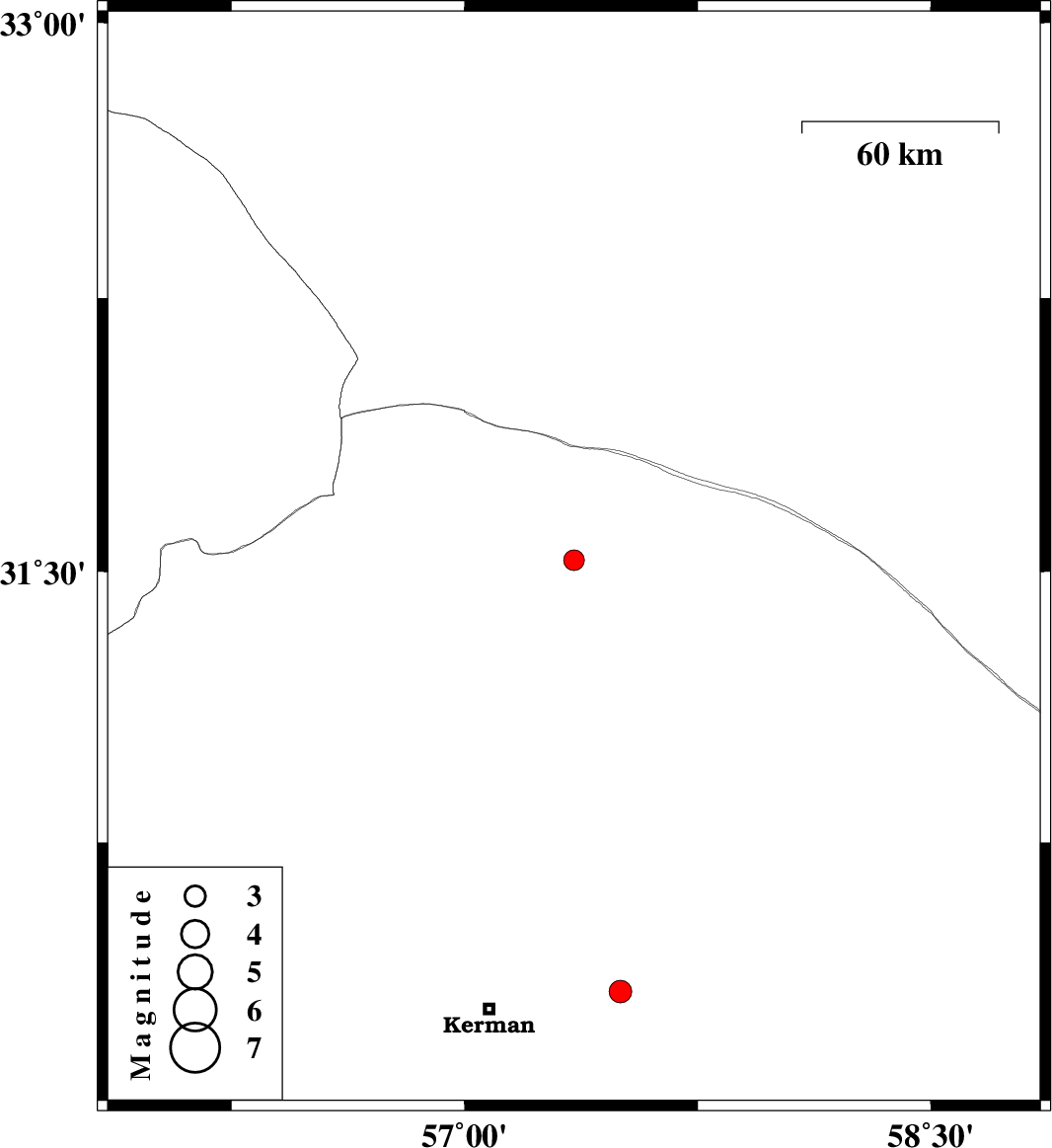 | 2024/02/09 | 14:56:33.2 | 18:26:33.2 | 30.336 | 57.502 | 7 | ML:3.2 | Kerman Province, 41 km -East of Kerman |