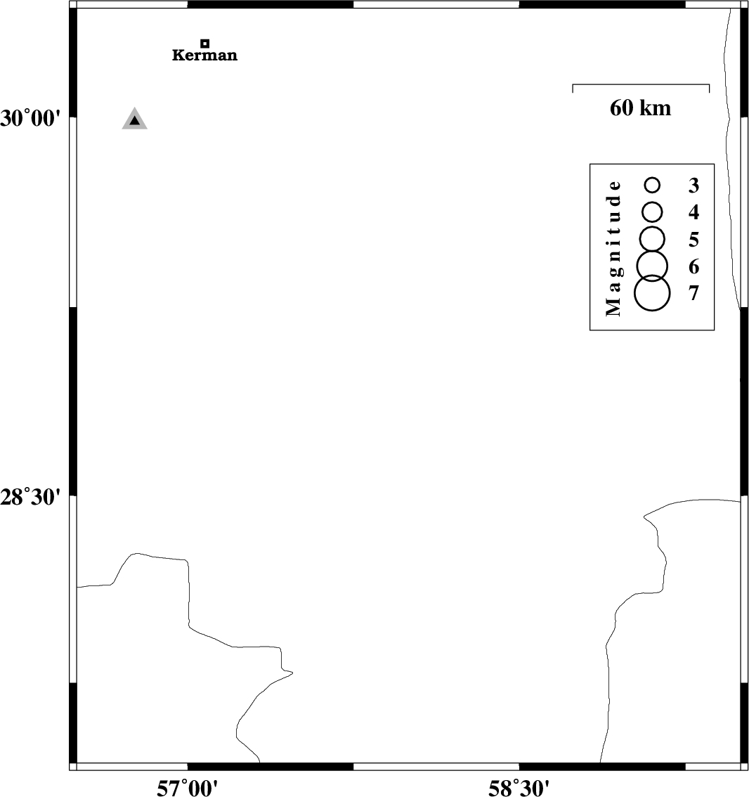 | 2024/03/07 | 17:27:03.9 | 20:57:03.9 | 28.939 | 58.05 | 8 | ML:3.9 | Kerman Province, 35 km South-West of Bam | ||