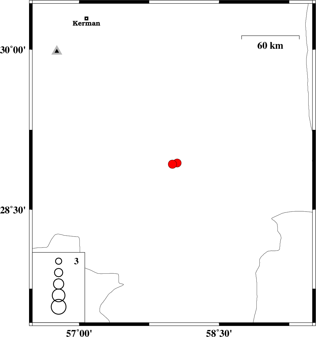 | 2024/03/08 | 23:20:10.5 | 02:50:10.5 | 28.928 | 57.999 | 8 | ML:4.1 | Kerman Province, 38 km North-East of Jiroft | ||