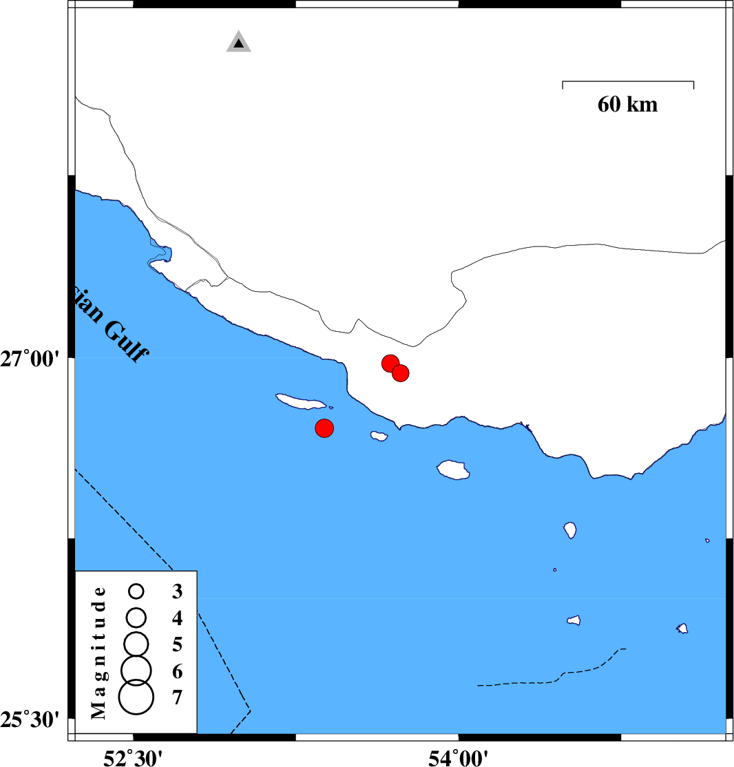 | 2024/03/06 | 15:46:49.0 | 19:16:49.0 | 26.707 | 53.382 | 12 | ML:3.8 | Persian Gulf, 73 km South-East of Lamerd | ||