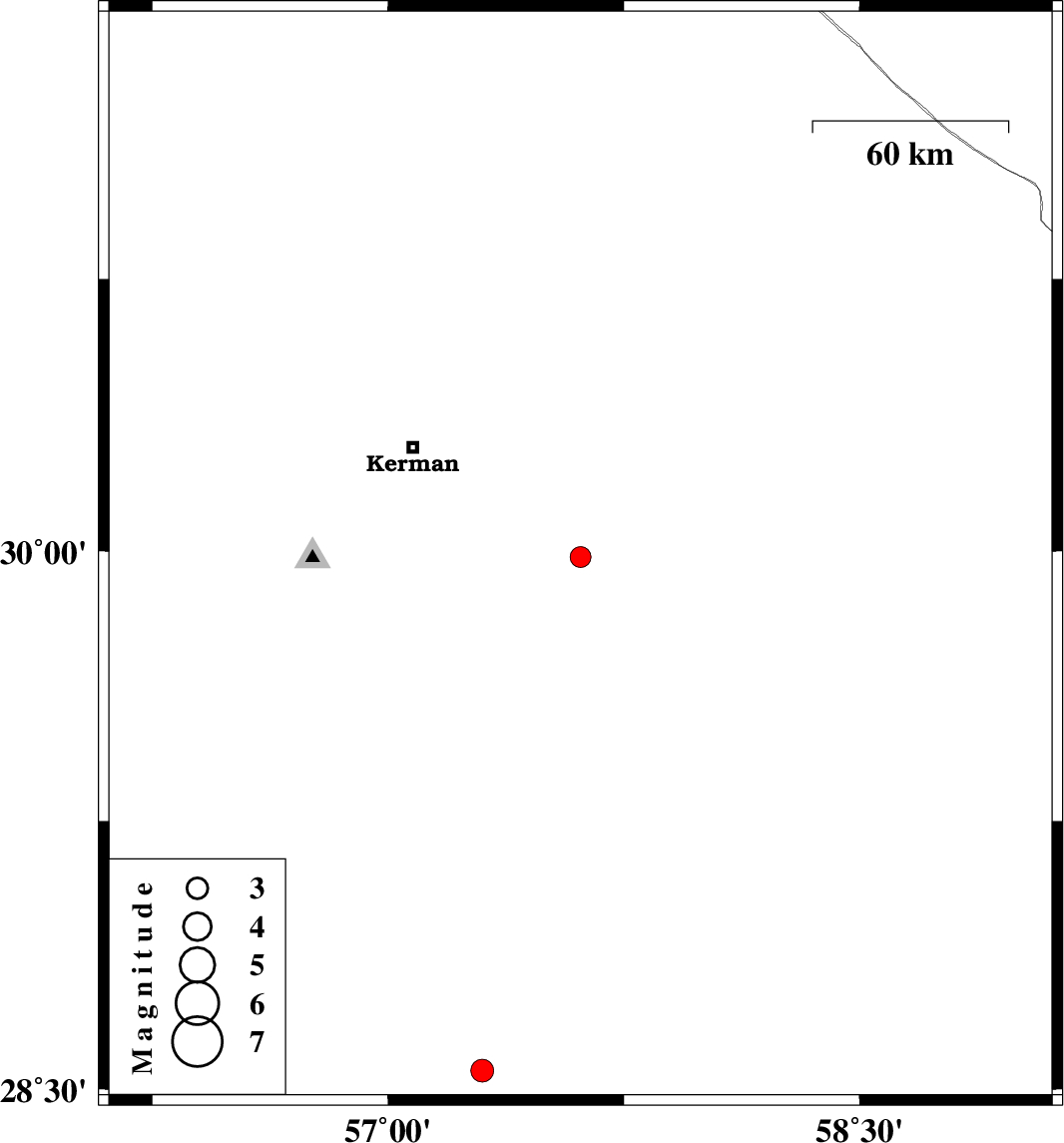 | 2024/03/26 | 07:04:33.2 | 10:34:33.2 | 29.984 | 57.612 | 8 | ML:3 | Kerman Province, 61 km South-East of Kerman | ||