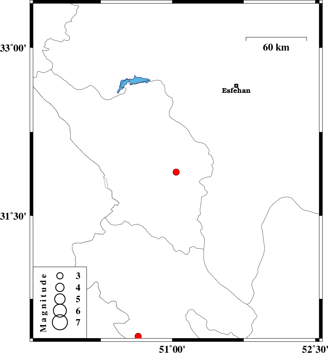 | 2024/03/28 | 08:27:29.0 | 11:57:29.0 | 31.891 | 51.041 | 12 | ML:3.1 | Chaharmahal Bakhtiari Province, 25 km -West of Borujen | ||