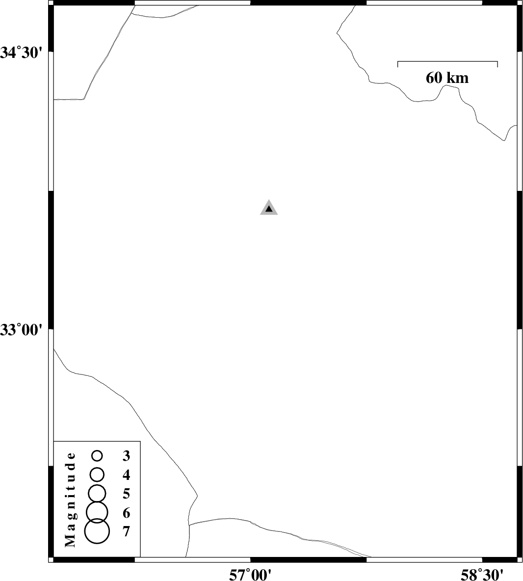 | 2024/04/01 | 13:44:03.6 | 17:14:03.6 | 33.247 | 57.225 | 7 | ML:3.4 | Yazd Province, 48 km South-East of Tabas |