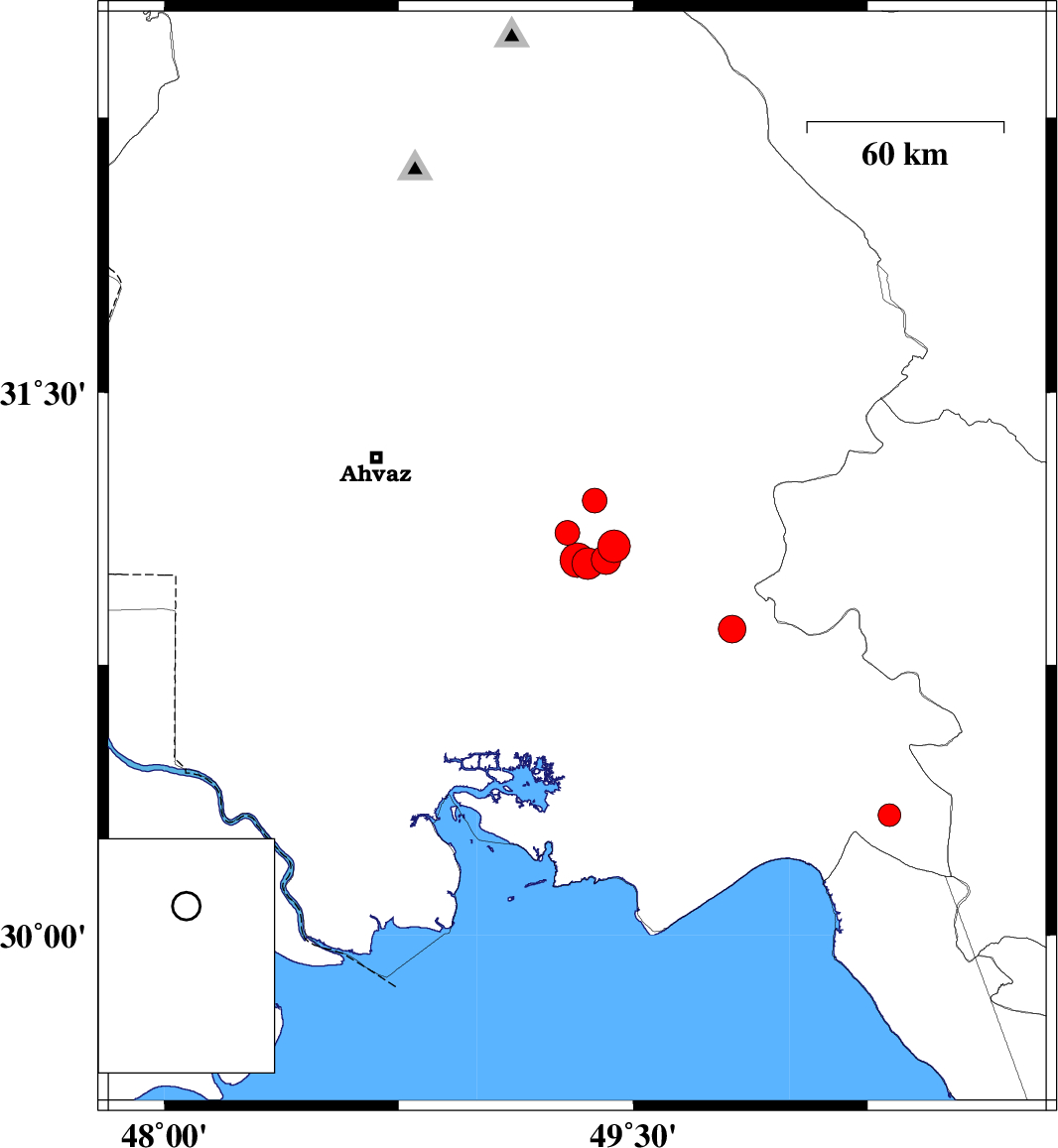 2024/03/30 | 08:35:01.6 | 12:05:01.6 | 30.259 | 50.35 | 12 | ML:3.2 | Khoozestan Province, 39 km South-East of Behbahan | ||