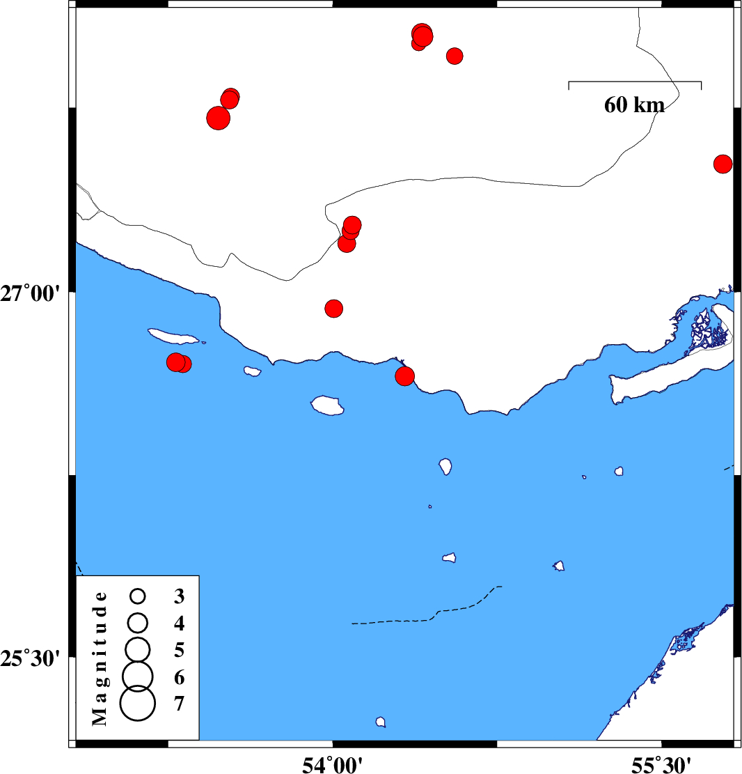 Persian Gulf, 71 km South-East of Lamerd | |