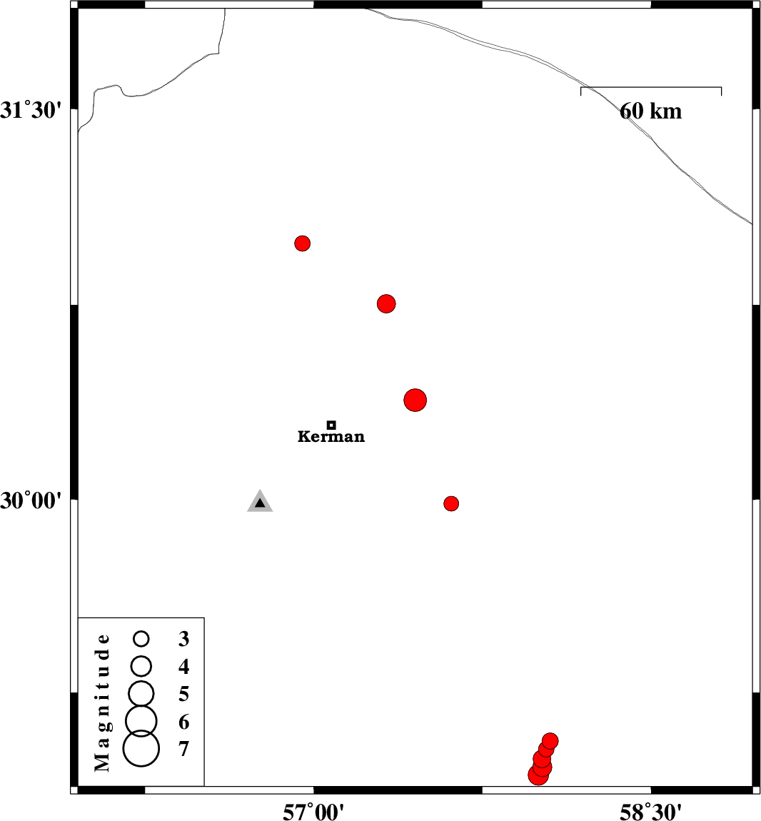 2024/03/30 16:07:20.3 19:37:20.3 30.75457.3228 ML:3.7 Kerman Province, 57 km North-East of Kerman