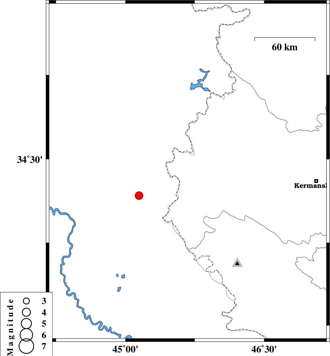 | 2024/04/14 | 08:13:55.6 | 11:43:55.6 | 34.381 | 45.675 | 10 | ML:3.9 | Kermanshah Province, 17 km South of Qasr-E-Shirin | ||