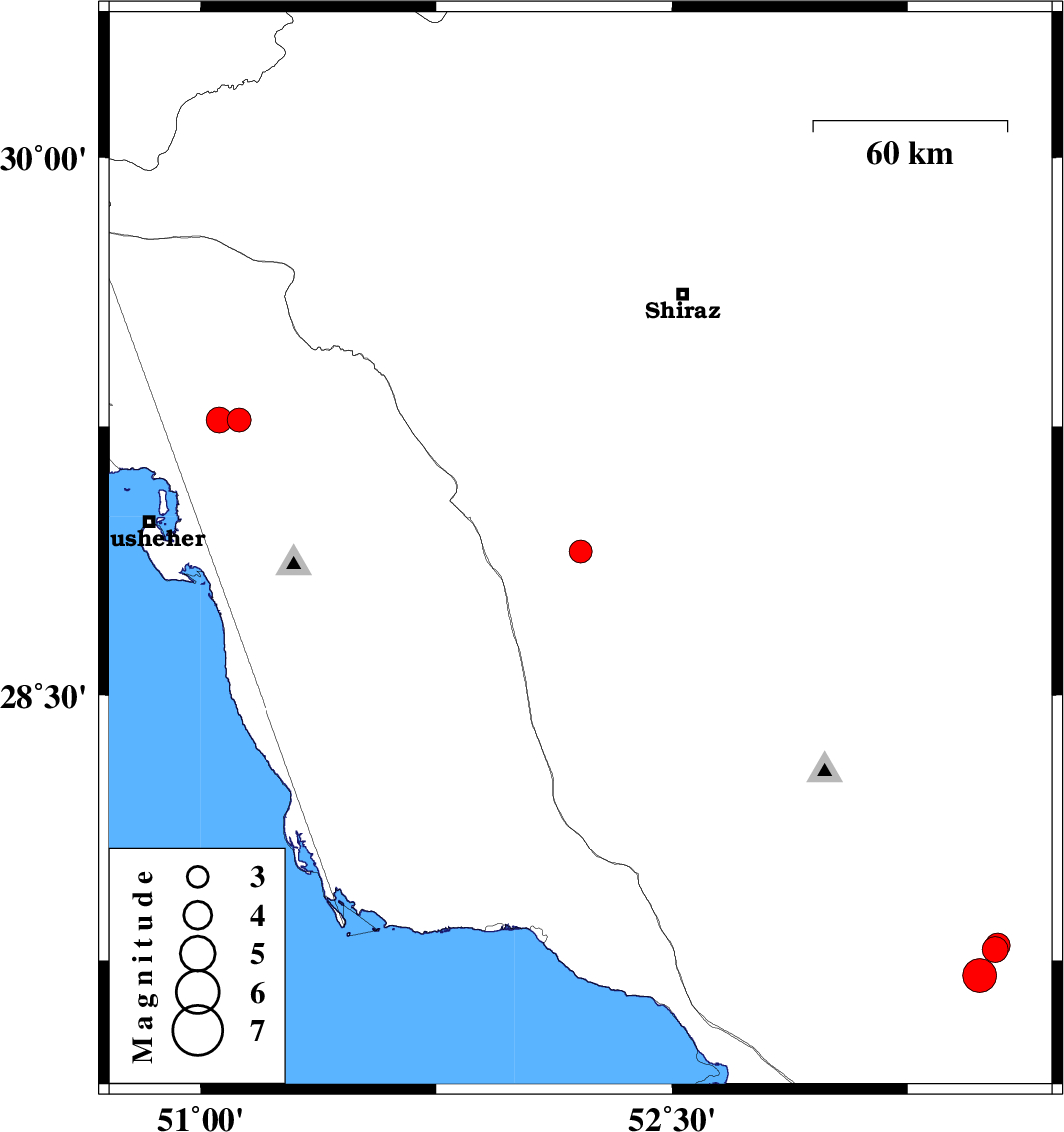 | 2024/04/02 | 19:45:28.8 | 23:15:28.8 | 29.268 | 51.121 | 10 | ML:3.4 | Bushehr Province, 8 km of Borazjan | ||