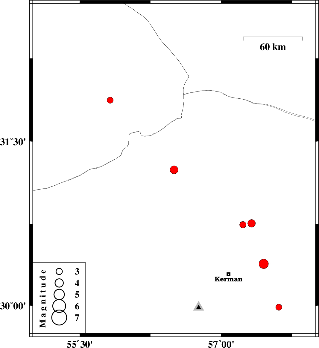 | 2024/03/26 | 07:04:33.2 | 10:34:33.2 | 29.984 | 57.612 | 8 | ML:3 | Kerman Province, 61 km South-East of Kerman |