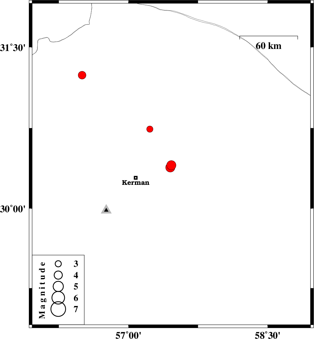| 2024/04/07 | 11:39:49.8 | 15:09:49.8 | 30.383 | 57.451 | 12 | ML:4.5 | Kerman Province, 37 km -East of Kerman |