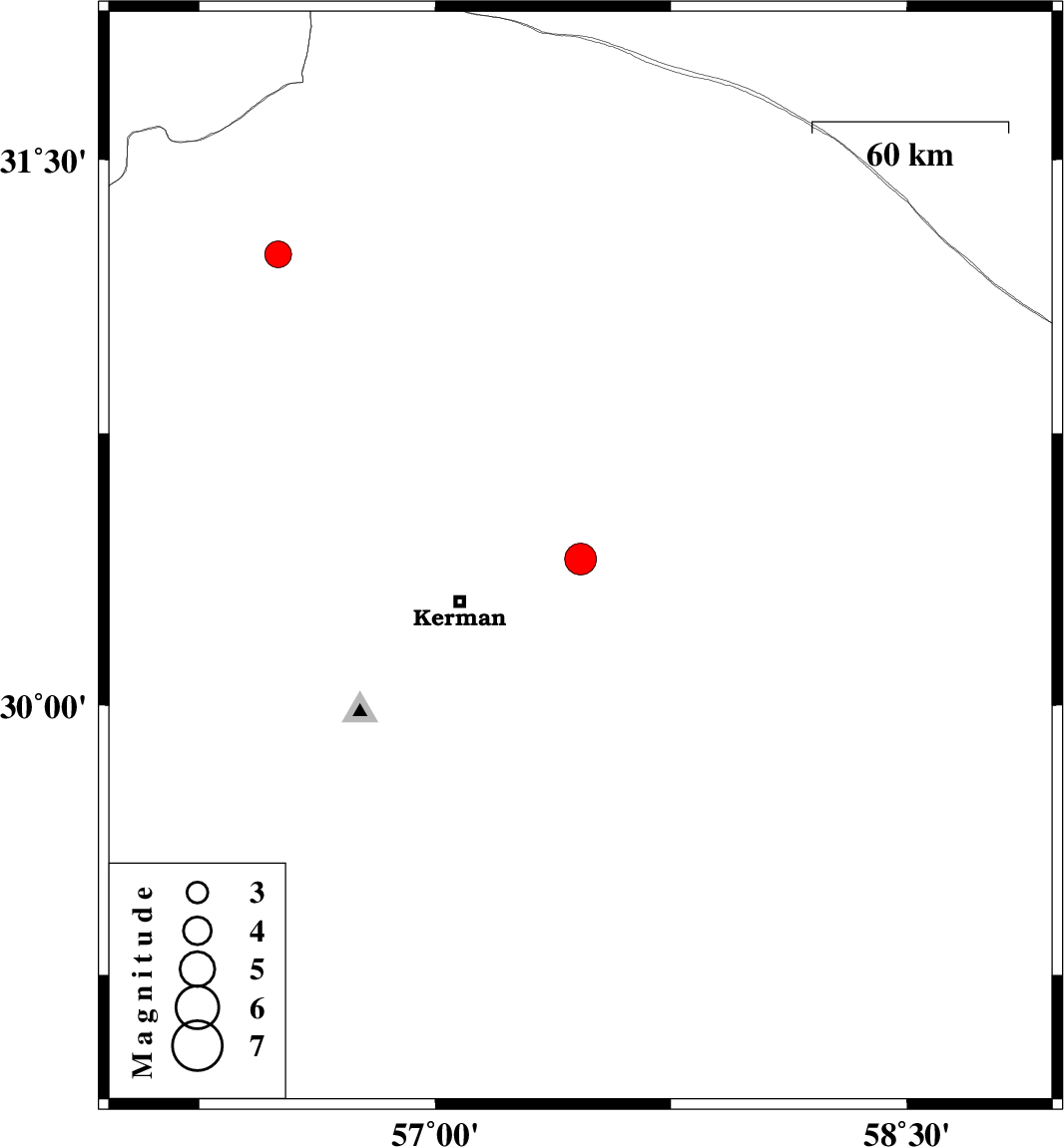 | 2024/05/01 | 13:34:00.4 | 17:04:00.4 | 30.404 | 57.462 | 12 | ML:4.5 | Kerman Province, 39 km North-East of Kerman | ||