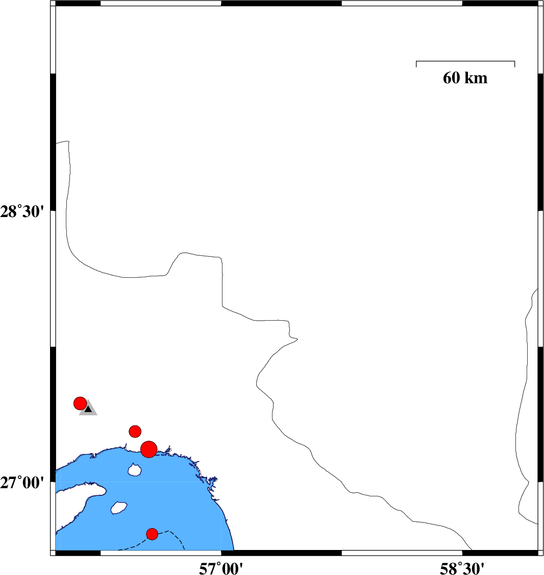 2024/04/27 | 22:52:13.2 | 02:22:13.2 | 28.37 | 57.042 | 10 | ML:3.6 | Kerman Province, 76 km South-West of Jiroft | ||