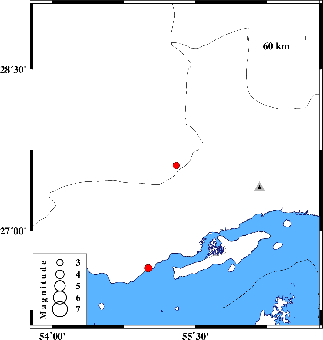 | 2024/05/18 | 23:15:56.5 | 02:45:56.5 | 27.607 | 55.298 | 17 | ML:3.1 | Fars Province, 95 km -East of Lar | ||