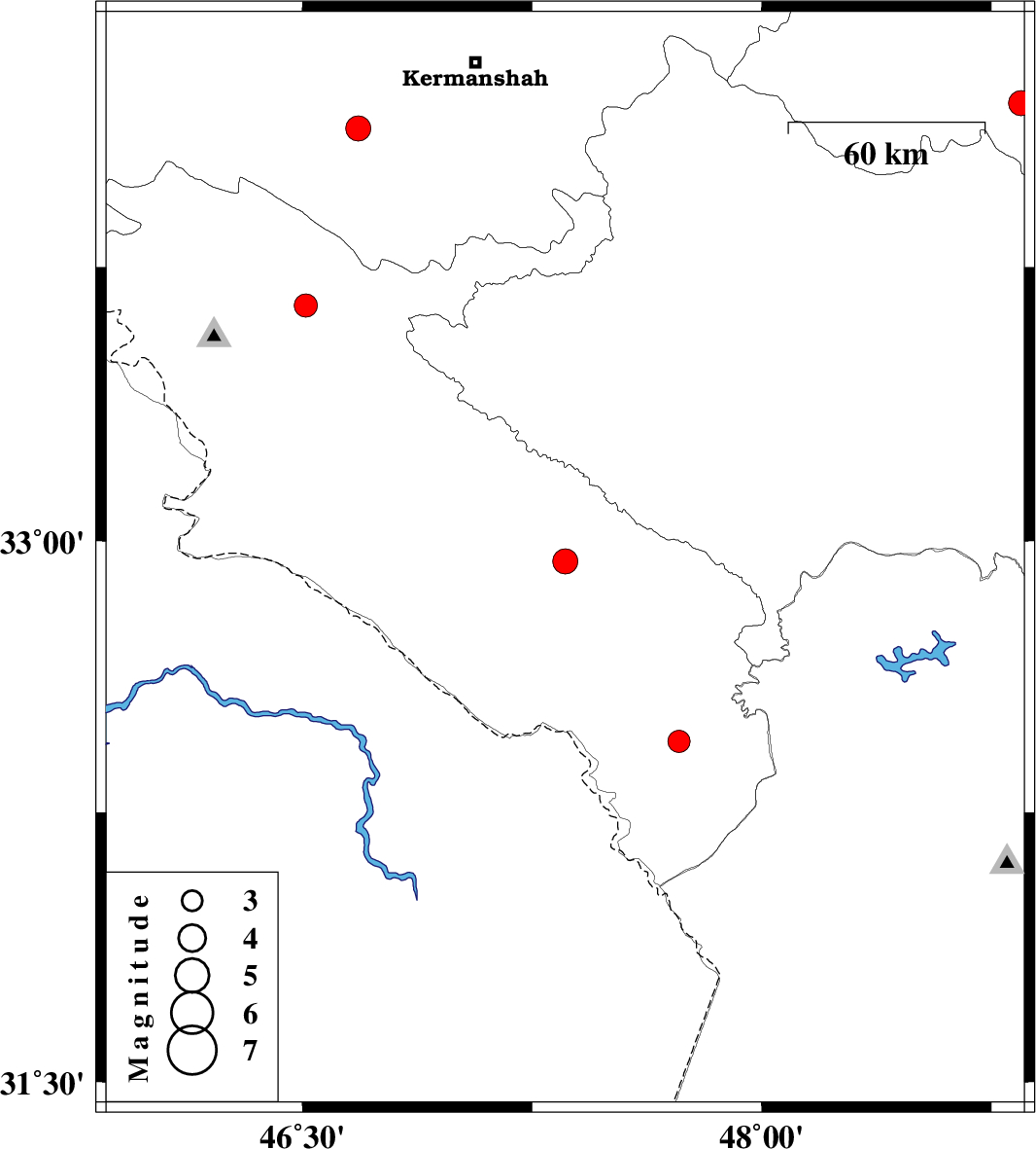 | 2024/05/25 | 12:42:31.0 | 16:12:31.0 | 32.944 | 47.358 | 17 | ML:3.6 | Ilam Province, 10 km -West of Abdanan | ||