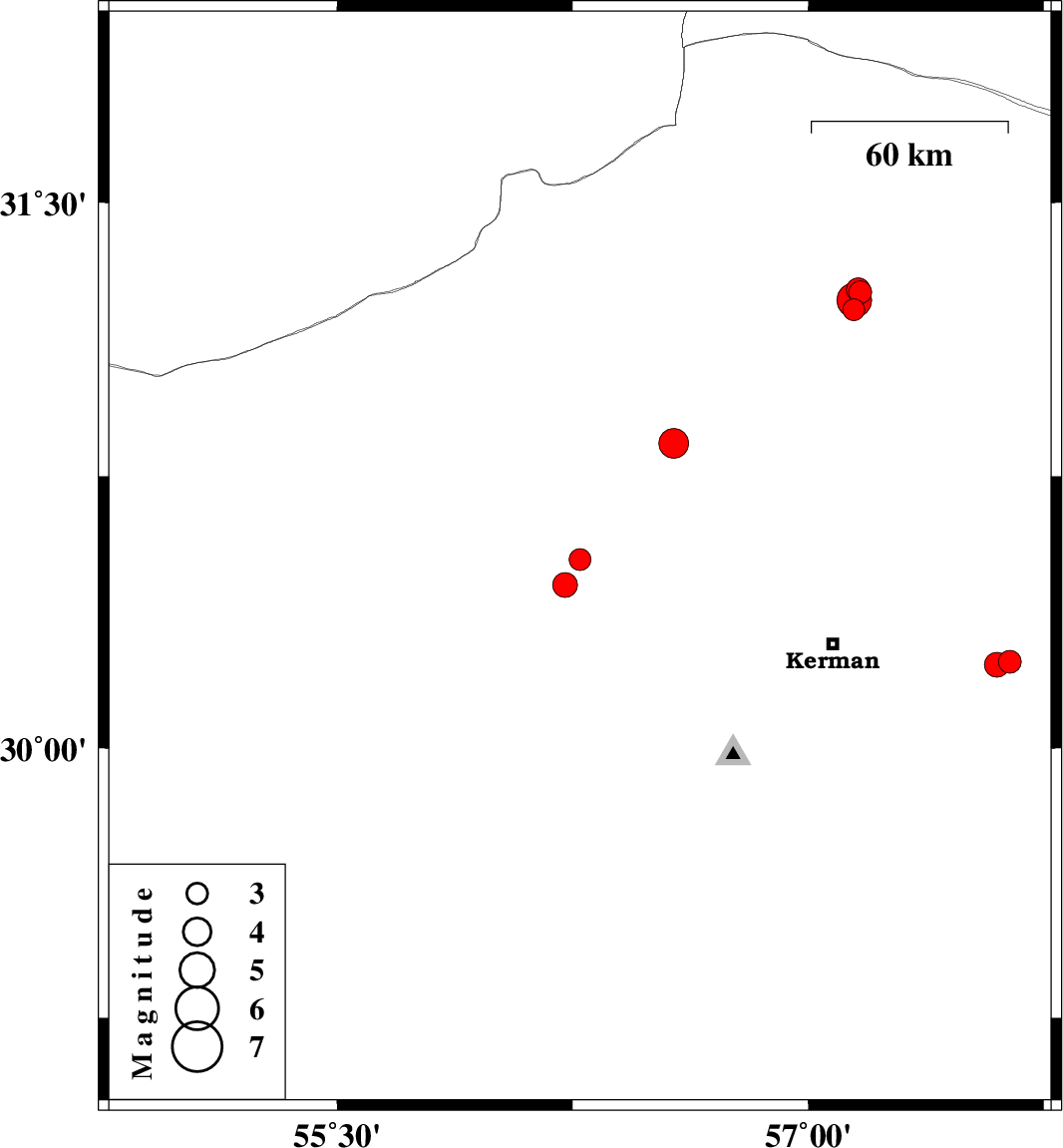 | 2024/06/20 | 05:11:53.1 | 08:41:53.1 | 30.521 | 56.273 | 12 | ML:3.1 | Kerman Province, 30 km North-East of Rafsanjan | ||