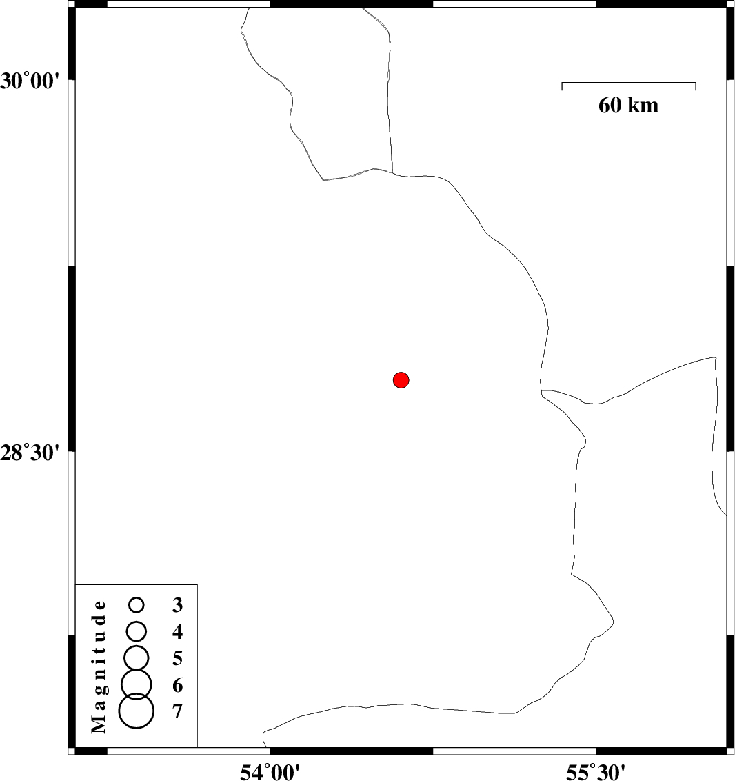 | 2024/05/28 | 23:51:57.9 | 03:21:57.9 | 27.767 | 53.555 | 12 | ML:3.2 | Fars Province, 82 km South of Jahrom |