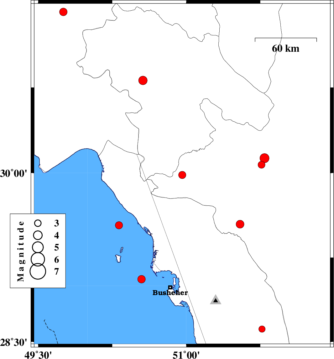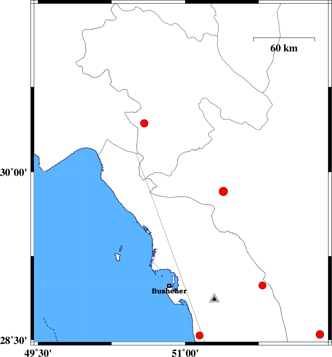 | 2024/06/07 | 02:12:16.2 | 05:42:16.2 | 29.058 | 50.547 | 12 | ML:3.5 | Persian Gulf, 29 km -West of Busheher | ||