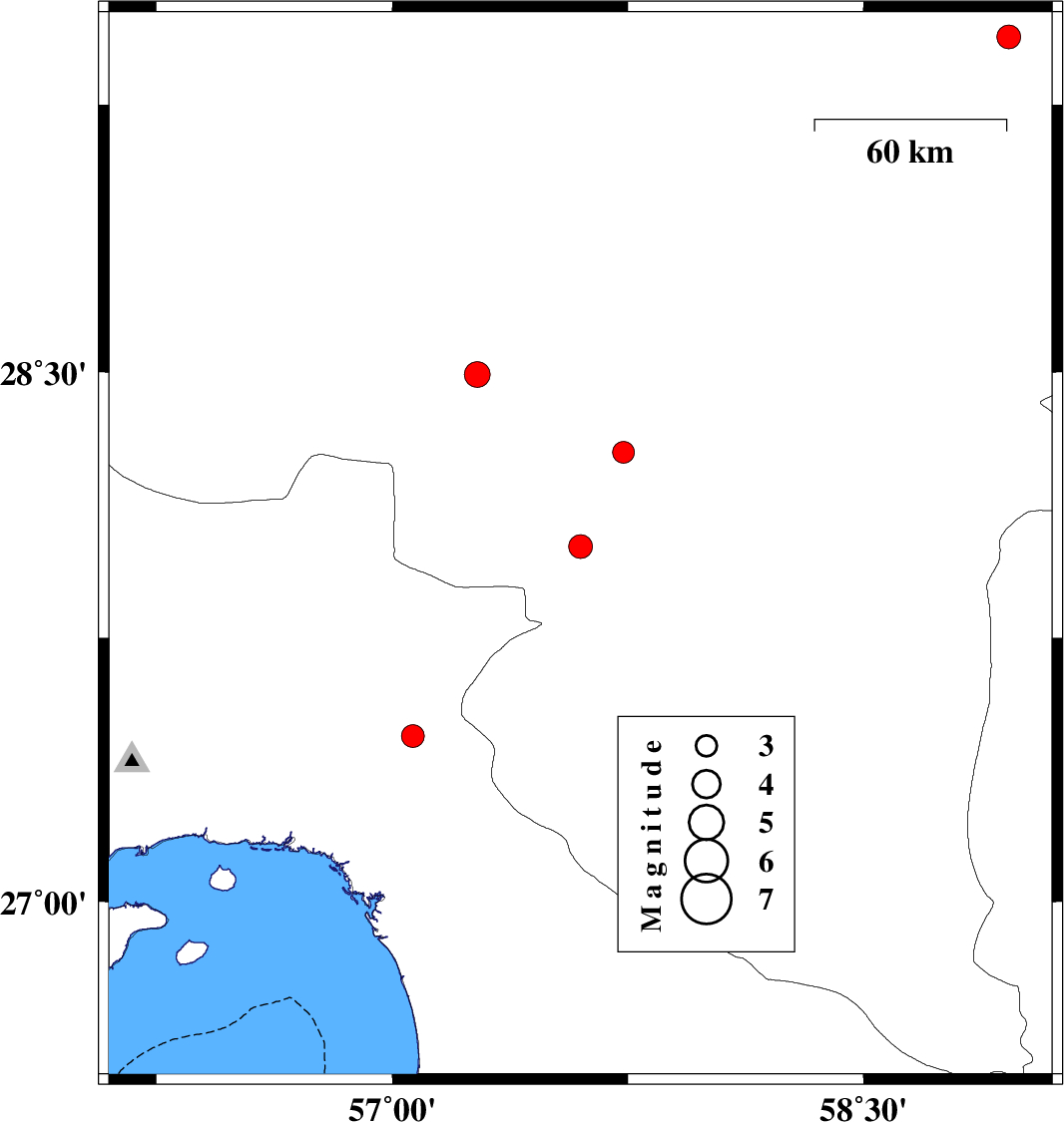 2024/07/07 | 04:07:22.0 | 07:37:22.0 | 28.009 | 57.599 | 12 | ML:3.4 | Kerman Province, 11 km of Kahnuj | ||